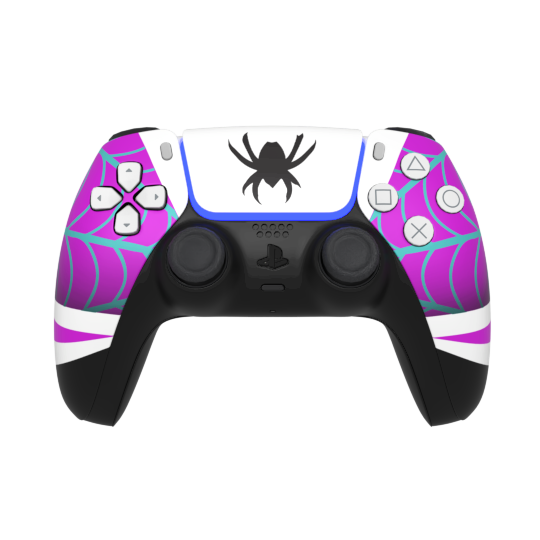 Step into the multiverse with this Ghost-Spider–inspired custom PS5 controller, channeling the sleek, bold aesthetic of Marvel’s iconic spider-hero.